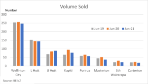 Over the past year, we have witnessed a trend of people looking to the surrounding districts for opportunities to find more reasonably priced property, particularly given the opportunities to work from home presented by our experience with lockdowns in 2020. Reflecting this, price growth has been strong in both Kapiti and the Wairarapa, with prices up sharply over the year: